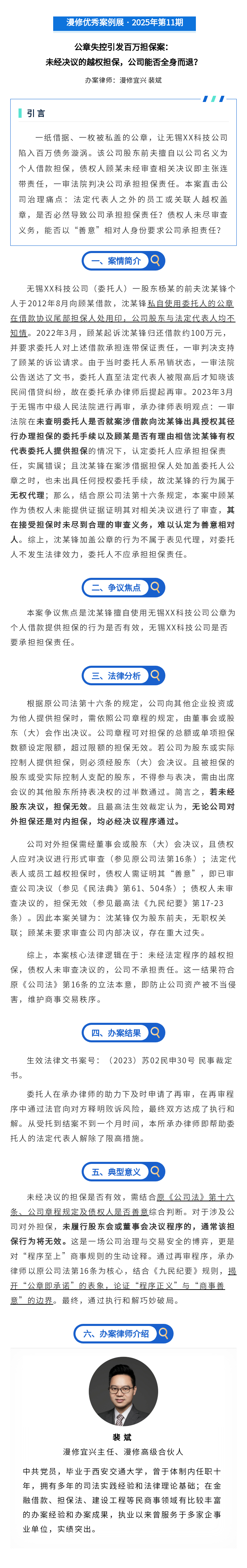 漫修优秀案例展 · 2025年第11期 | 公章失控引发百万担保案:未经决议的越权担保,公司能否全身而退?”