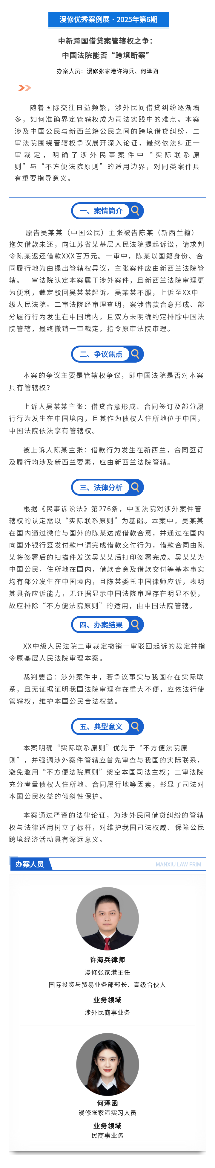 漫修优秀案例展 · 2025年第6期 | 中新跨国借贷案管辖权之争:中国法院能否“跨境断案”
