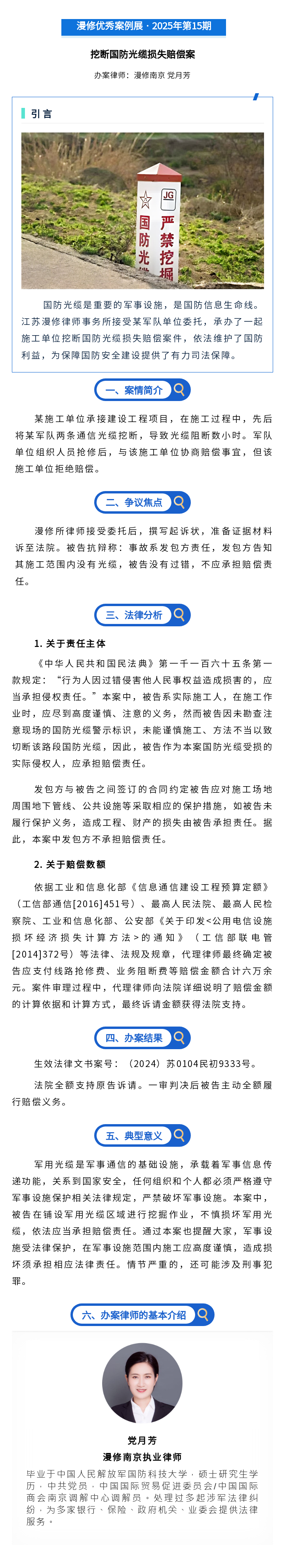 漫修优秀案例展 · 2025年第15期 | 挖断国防光缆损失赔偿案