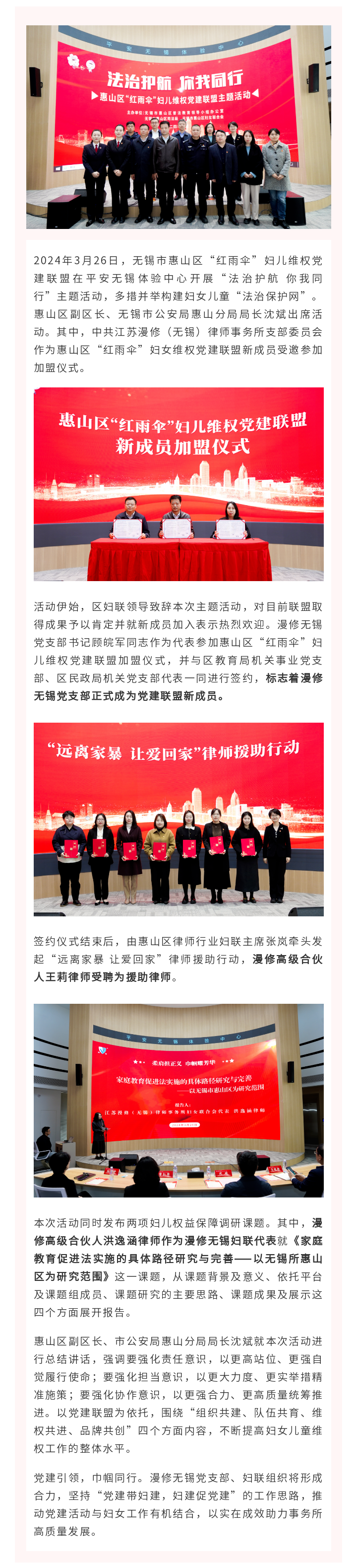 漫修无锡党支部、妇联组织代表受邀参加无锡市惠山区“红雨伞”妇儿维权党建联盟主题活动