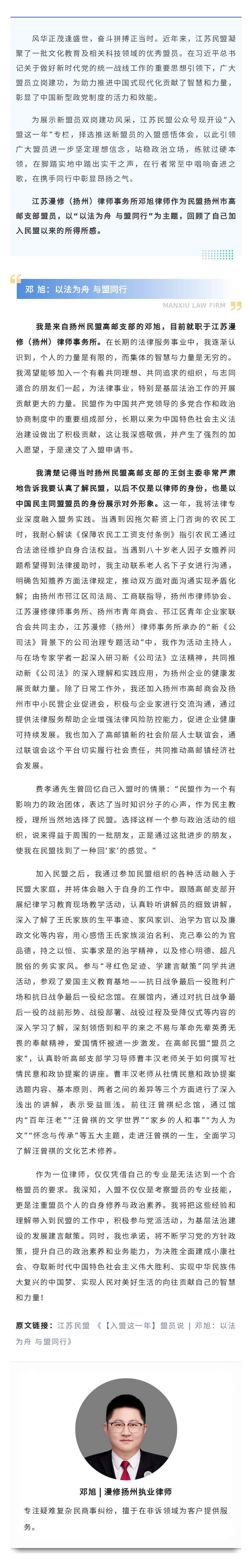 盟员说 | 漫修扬州邓旭律师:以法为舟 与盟同行