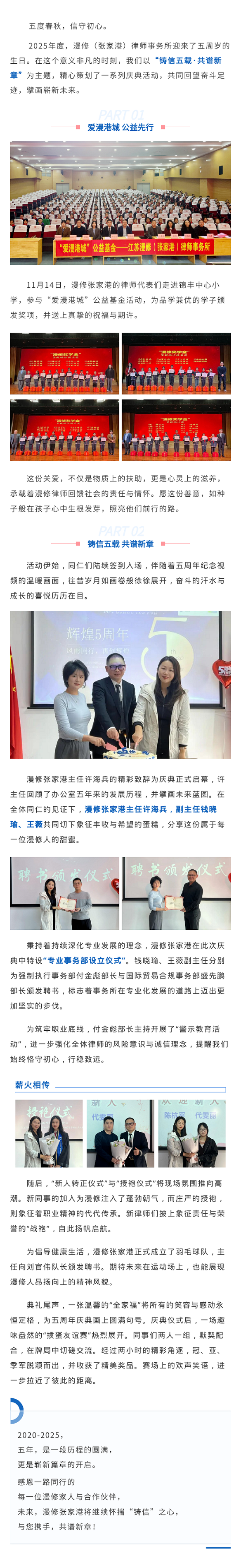 铸信五载 • 共谱新章 | 漫修张家港五周年庆典系列活动圆满举行