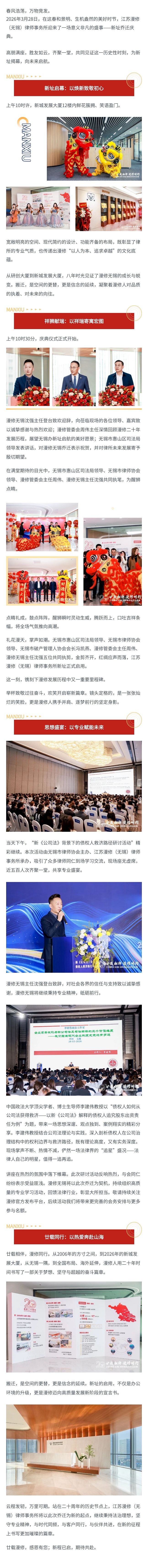 廿载漫修启新程 云程发轫赴山海 | 江苏漫修(无锡)律师事务所乔迁庆典圆满举行