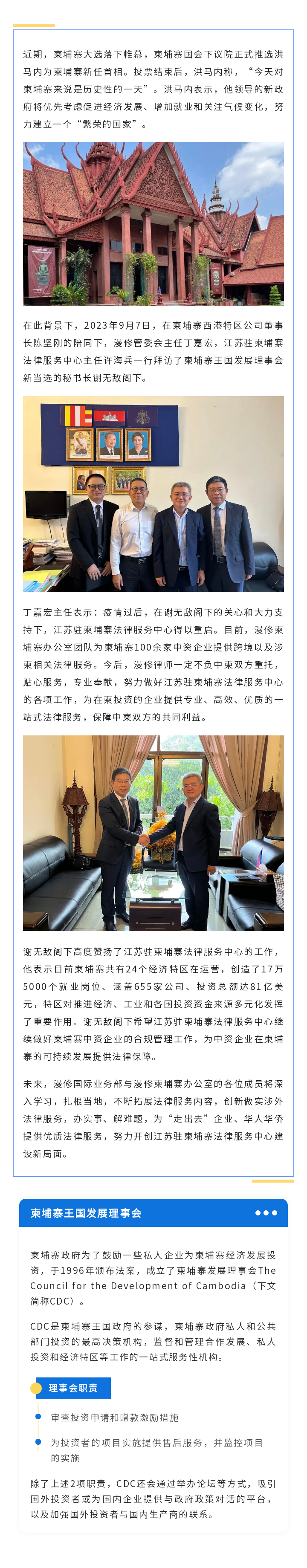漫修国际 | 漫修管委会主任丁嘉宏,江苏驻柬埔寨法律服务中心主任许海兵一行拜访柬埔寨王国发展理事会