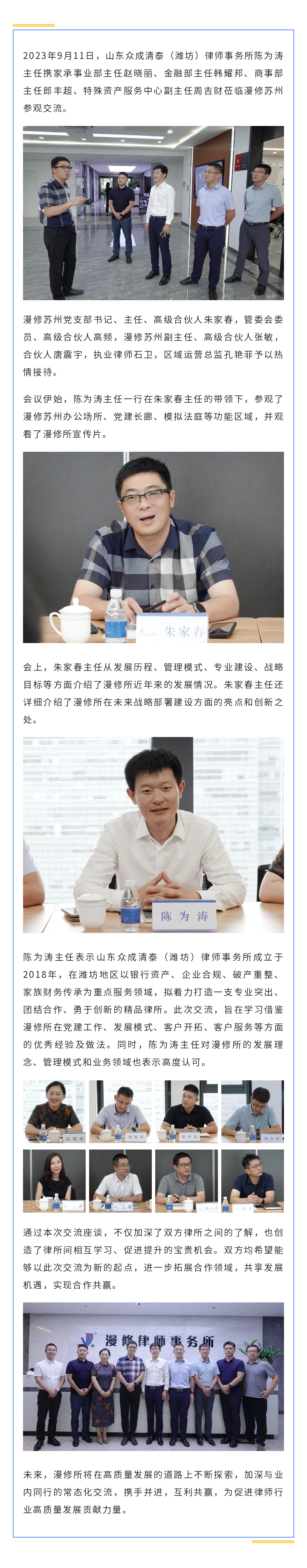 漫修资讯 | 山东众成清泰(潍坊)律师事务所一行莅临漫修苏州参观交流