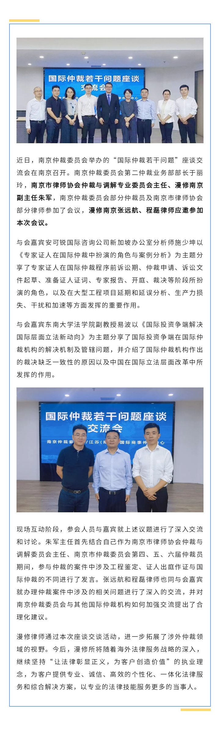 漫修资讯 | 漫修南京朱军、张远航、程磊律师应邀参加国际仲裁若干问题座谈交流会