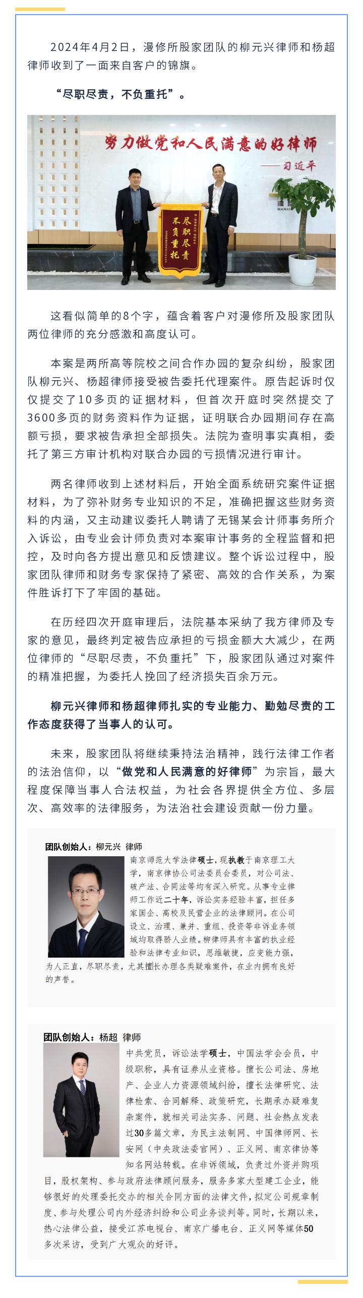 尽职尽责,不负重托——漫修股家团队获赠锦旗案背后的故事