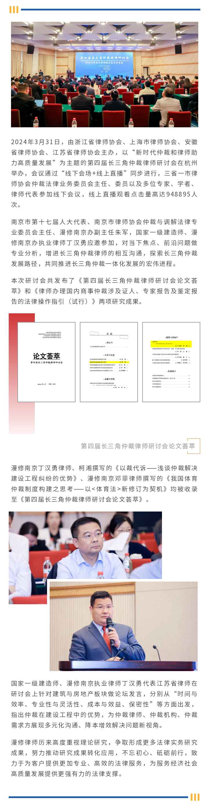 漫修南京副主任朱军、律师丁汉勇应邀参加第四届长三角仲裁律师研讨会