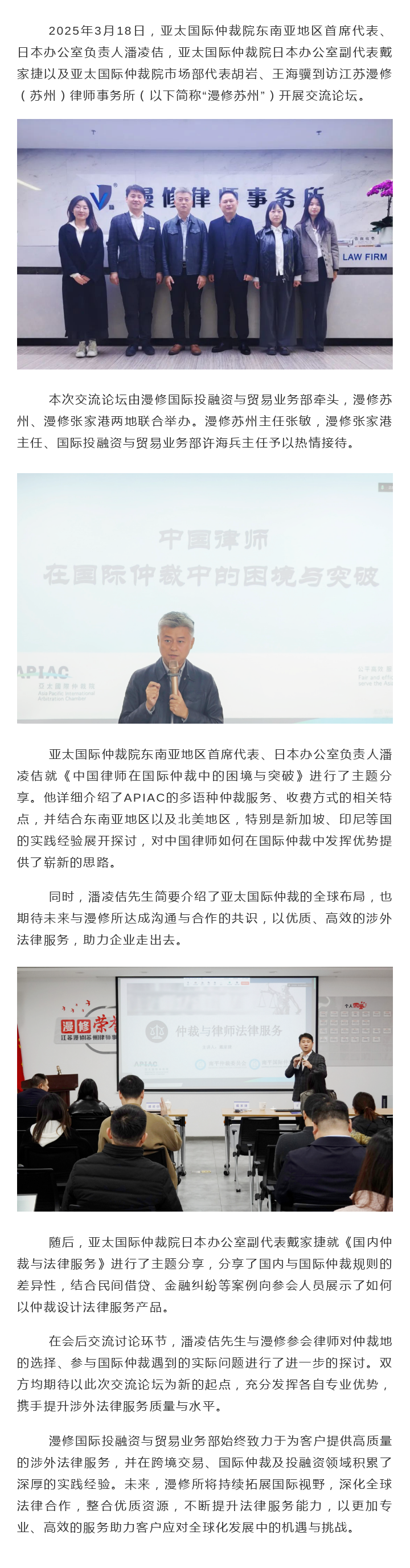 亚太国际仲裁院(APIAC) 代表团到访漫修苏州学习交流