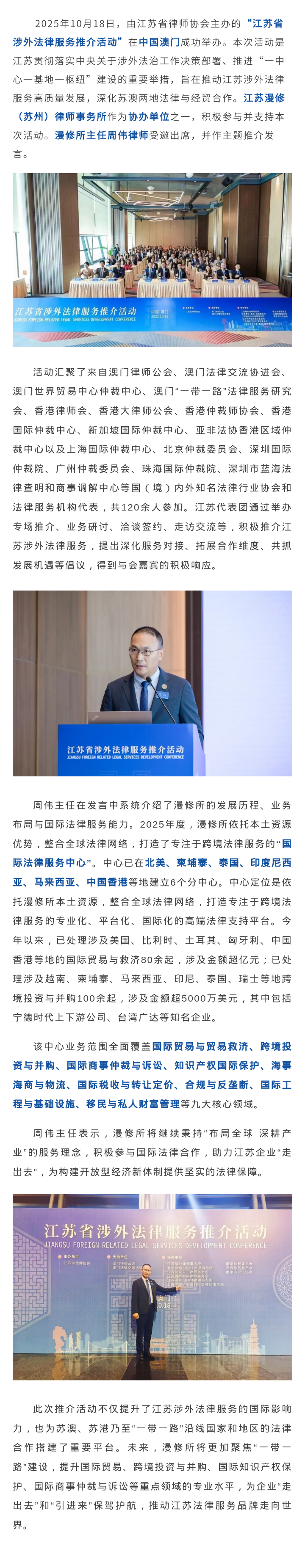 漫修所亮相江苏省涉外法律服务推介活动 · 澳门站