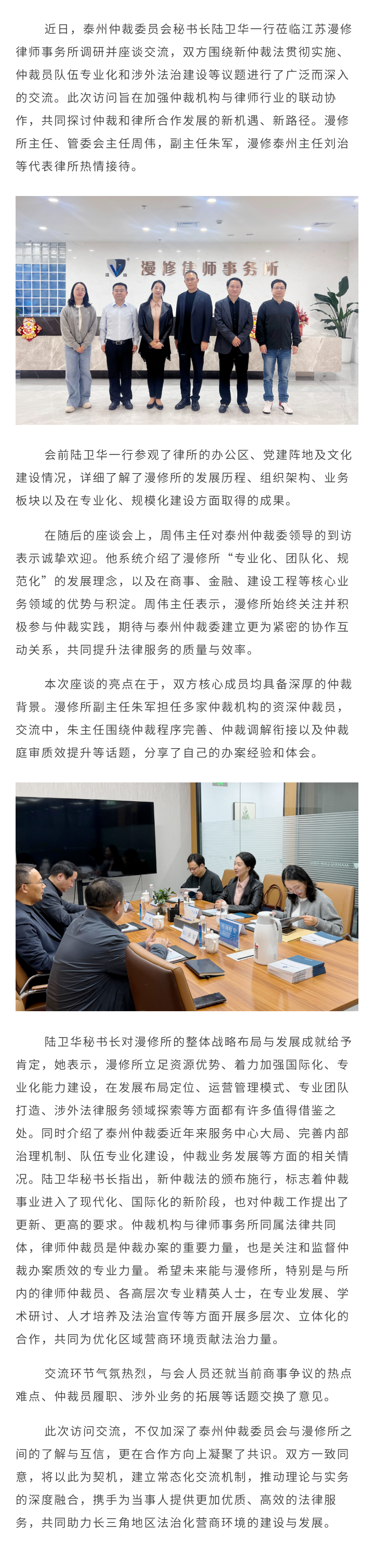 共话仲裁发展 深化法治协同 | 泰州仲裁委员会秘书长一行莅临我所调研交流