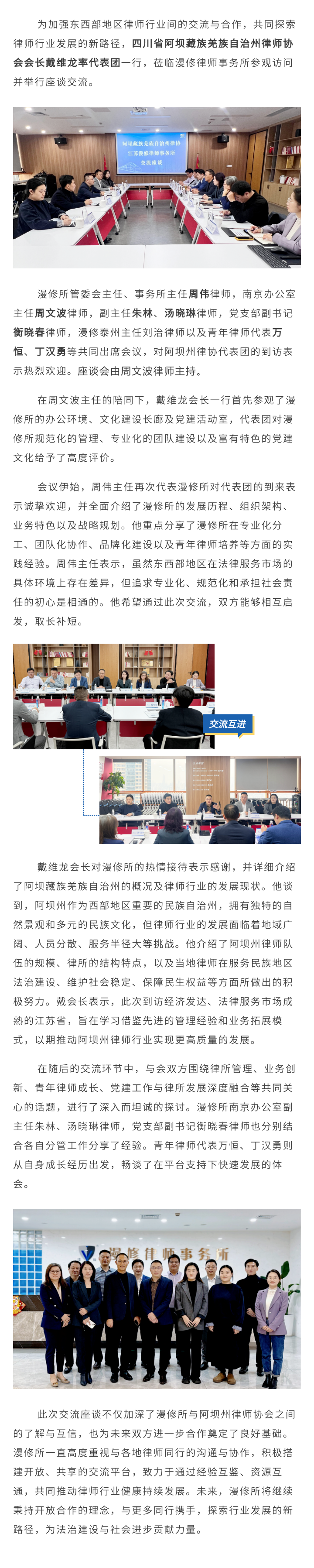 深化东西部交流协作 共促律师行业发展 | 阿坝州律协戴维龙会长一行莅临漫修律师事务所参观座谈