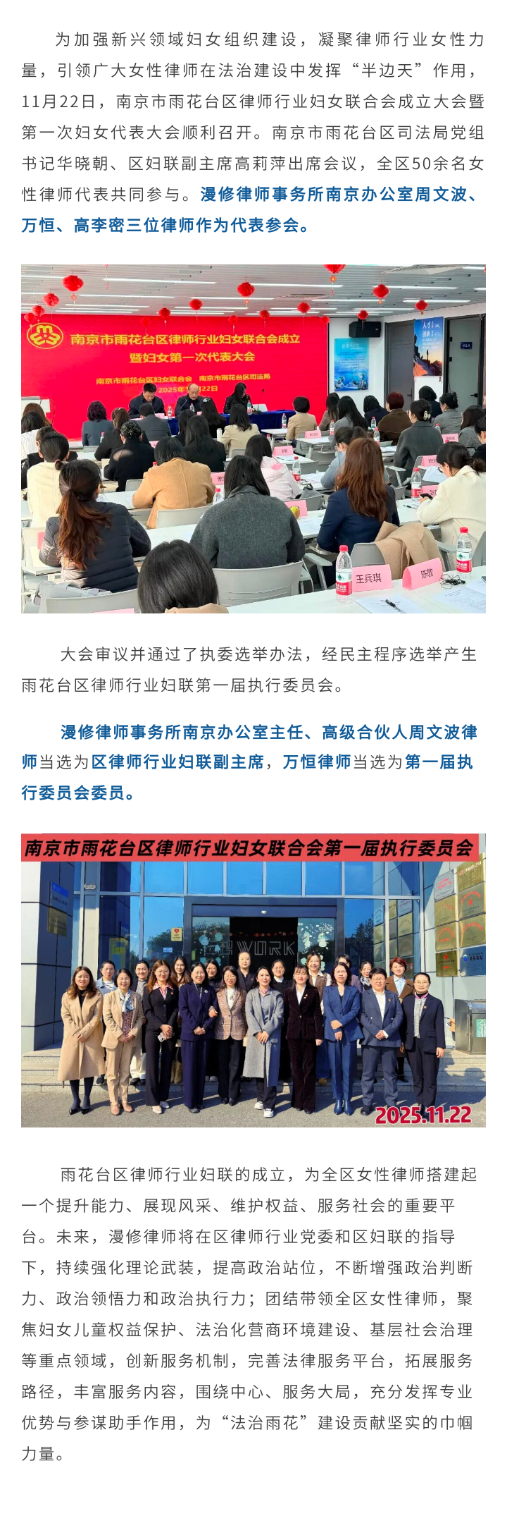巾帼担当 履职新篇 | 漫修律师周文波、万恒当选雨花台区律师行业妇联第一届执委