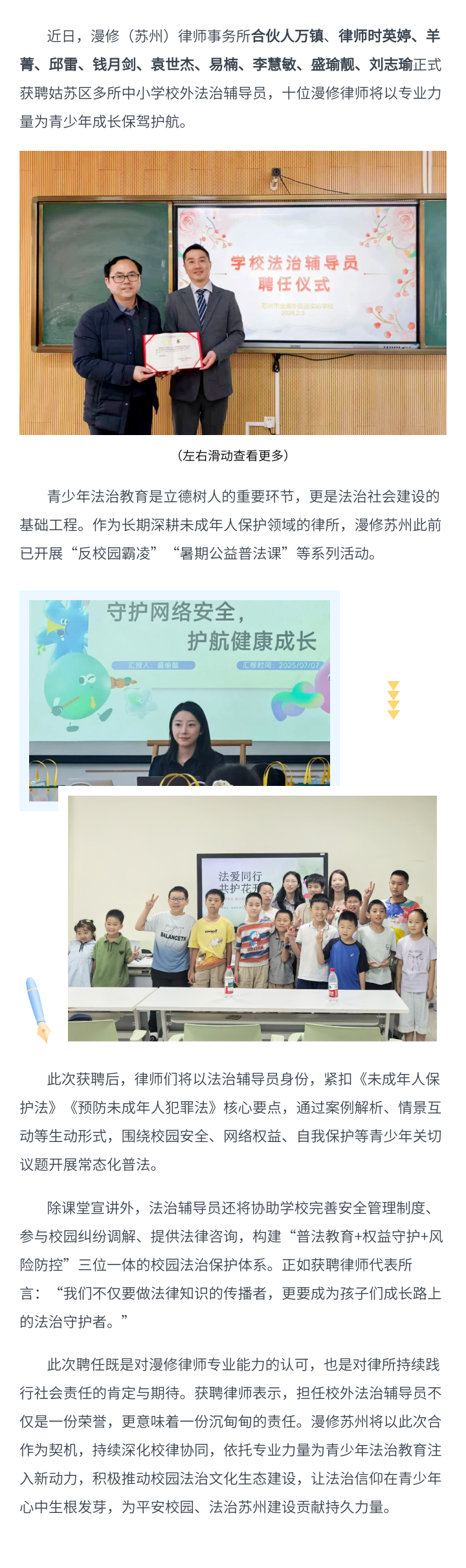 法护童心 薪火相传 | 漫修苏州多名律师获聘校外法治辅导员