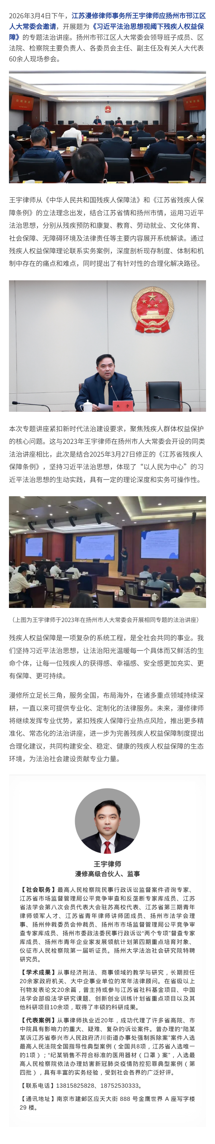 漫修所王宇律师应邀为邗江区人大常委会开设法治专题讲座