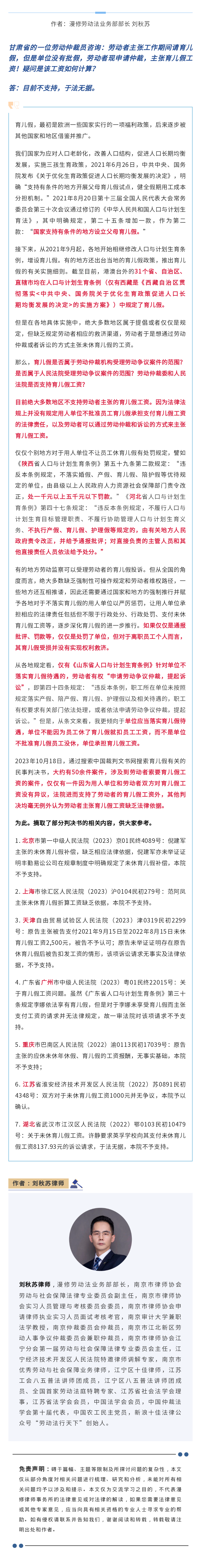 漫修原创 | 单位不批育儿假,员工主张育儿假工资,仲裁委和法院支持吗?